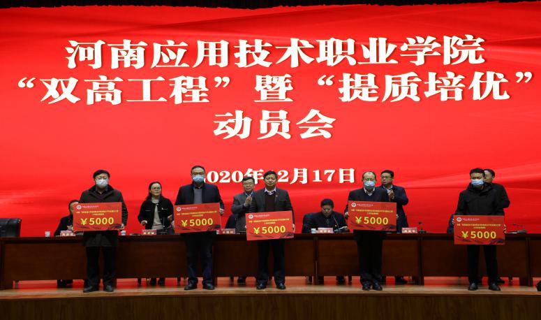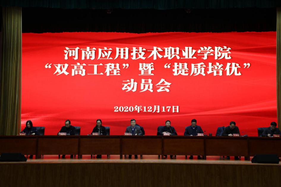 2020年12月17日下午,我校在学生活动中心报告厅召开“双高工程”暨“提质培优”动员会。校长范晓伟,党委副书记蒋清民,副校长陈君丽、魏新华、薄新党、左智成、刘振民,纪委书记陈雅莉出席会议,全体中层干部、教研室主任、专业负责人及部分骨干教师参加会议。会议由党委副书记蒋清民主持。