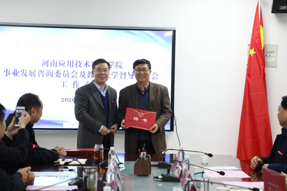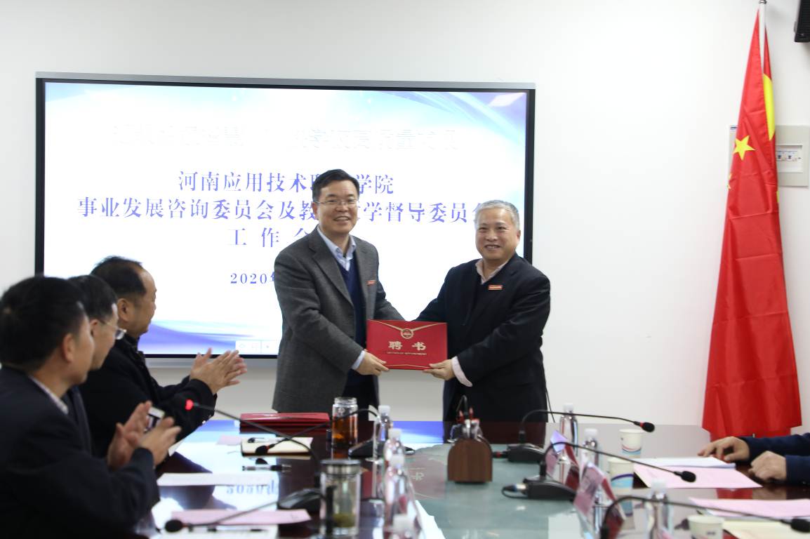 2020年1月10日下午,我校在办公楼三楼会议室召开事业发展咨询委员会及教育教学督导委员会工作会议,郑州大学副校长屈凌波教授、郑州大学化工与能源学院副院长任保增教授,河南经贸职业学院原校长苏万益教授,河南工业大学国际教育学院院长张浩军教授,“中原千人计划”教学名师、河南工业职业技术学院柔性制造河南省工程实验室主任韩全立教授应邀出席此次会议。我校校长范晓伟,党委副书记蒋清民、朱东方,副校长赵玉奇、陈君丽、薄新党、左智成及相关部门负责人参加会议。党委副书记蒋清民主持会议。