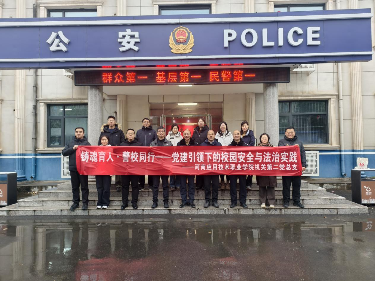 为深入学习贯彻总体国家安全观,切实提升党员干部反恐防恐意识和法治素养,推动学校与属地派出所党建共建联动走深走实,2025年12月12日,发展与质量管理处党支部全体党员参加机关第二党总支组织的赴西流湖派出所主题党日活动。此次活动以“铸魂育人 警校同行”为主题,通过党建引领凝聚合力,共同筑牢校园安全防线,促进法治教育融入实践。