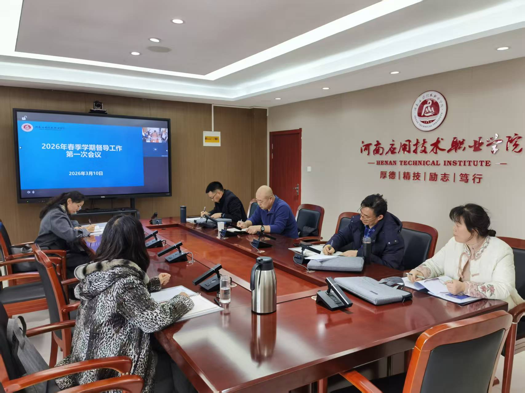 3月10日上午,学校2026年春季学期教育教学督导委员会第一次工作会议在办公楼会议室召开。全体督导员、督导办公室相关人员参加会议,会议由发展规划处督导办公室处长吕玮主持。